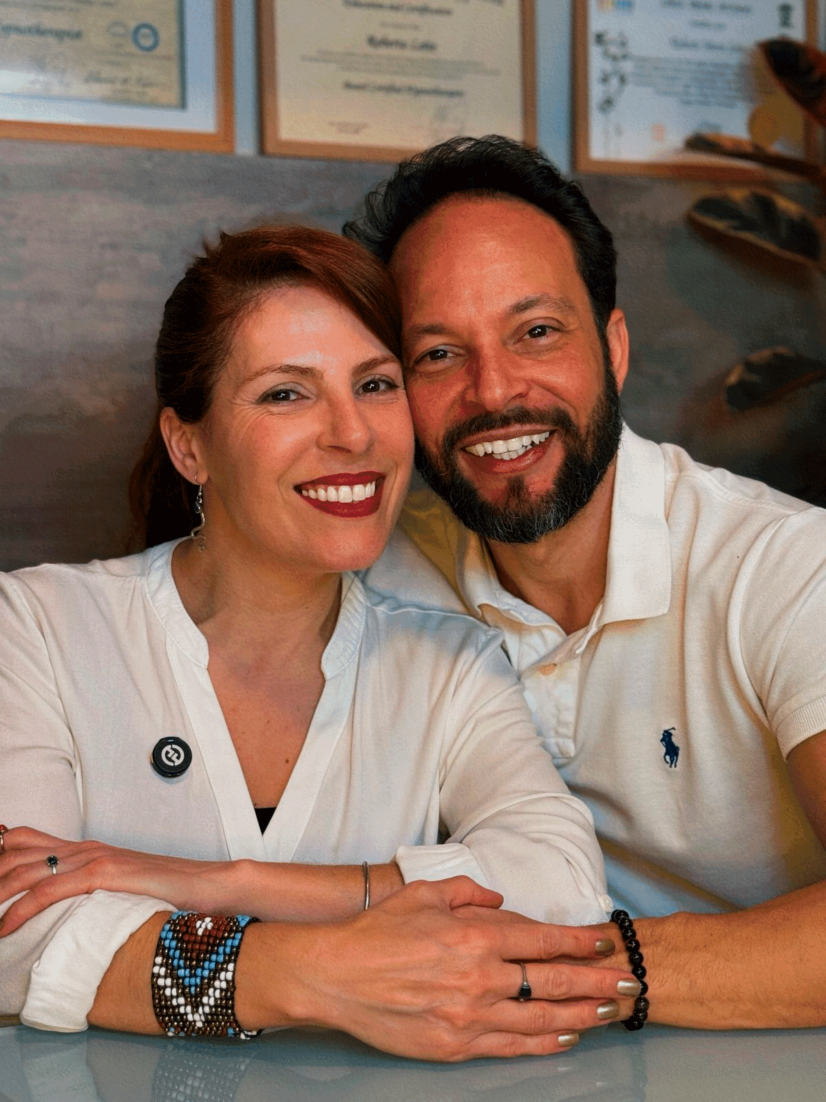 Robertah e Flávio unem experiência de vida e profissional para apoiar pessoas e casais na transformação. Com técnicas como hipnoterapia, psicanálise, constelação familiar, PNL, sound healing, transgeracionalidade Reiki e vida uterina, ajudam a superar bloqueios, reconectar relacionamentos e fortalecer autoestima. Tendo enfrentado desafios pessoais profundos, oferecem um espaço seguro e acolhedor, equilibrando perspectivas masculina e feminina, para que cada pessoa possa ativar seu potencial e seguir em sua jornada de crescimento pessoal.
